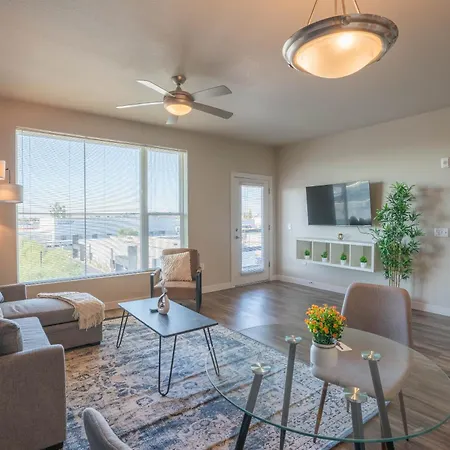 Stylish 1Bd - Balcony, Pool, Gym, W-D - Sleeps 4 Apartment Tempe is located a 10-minute drive from Grady Gammage Memorial Auditorium and 2.2 miles from the outdoor Sun Devil Football Stadium. Wi-Fi is also available throughout the property for guests to enjoy.